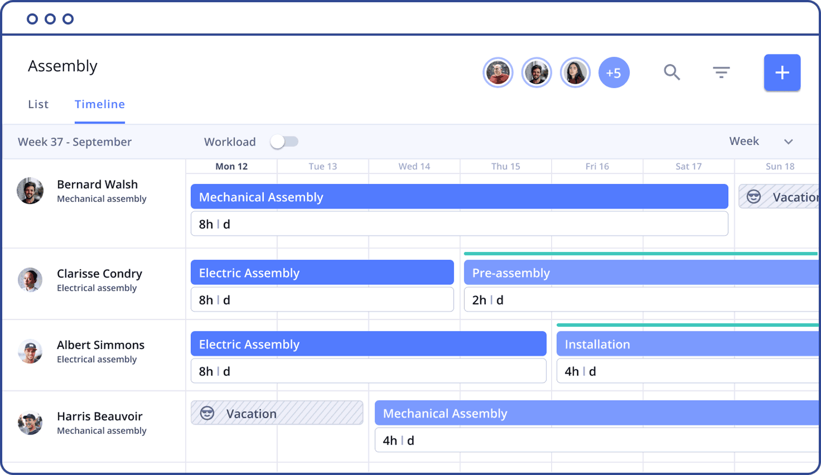 Using Allex, you always have a clear overview of all employees and resources. You can view the quarter or zoom in to the week view to get a daily overview of who is working with whom and when.